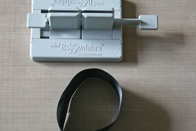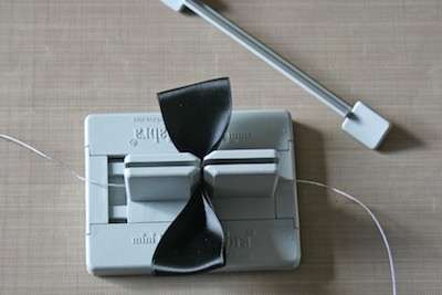 12. Cut 12″ of Bowdabra Bow Wire and place the wire into the Mini Bowdabra. Place the ribbon loop into the Mini Bowdabra tape side down.