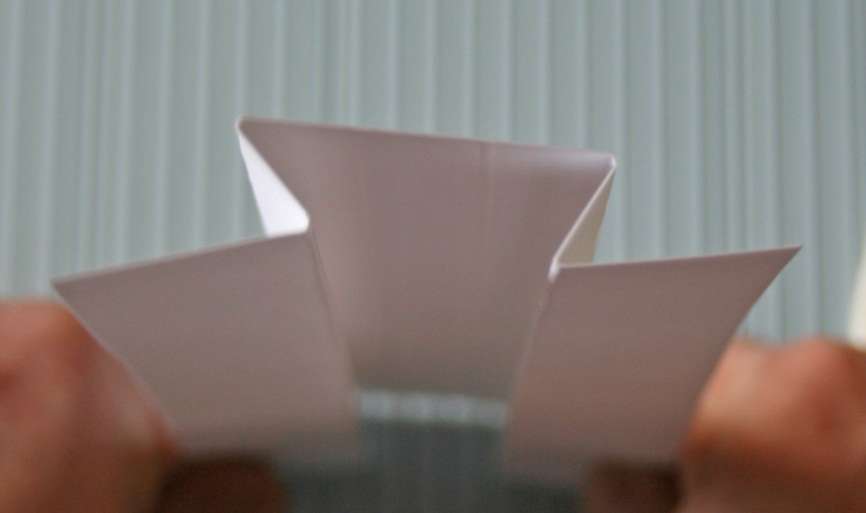 4. Fold the cardstock at the 1 ½ and 3 ½ inch score (a valley fold).