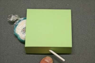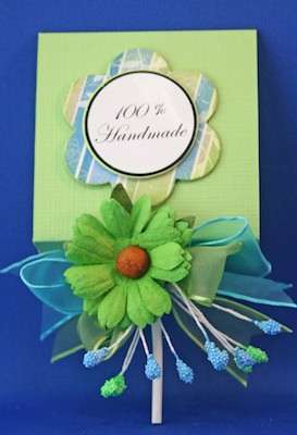 15. Use the remaining Bowdabra Bow Wire to tie the bow to the lollipop. Place sticker on the front of lollipop and your little lollipop gift is complete. Follow the instructions to make several for baby showers and birthday parties.
