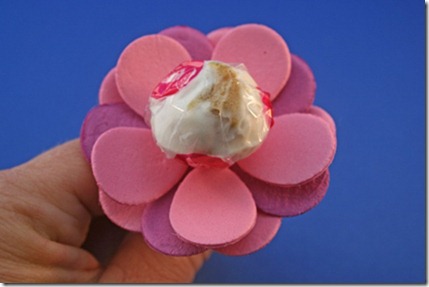 3. Insert the lollipop into the foam center petal cut-out.