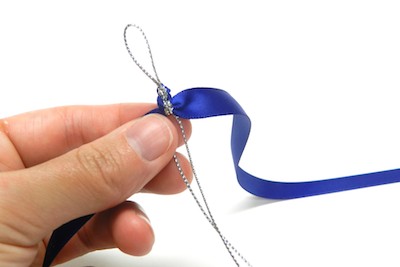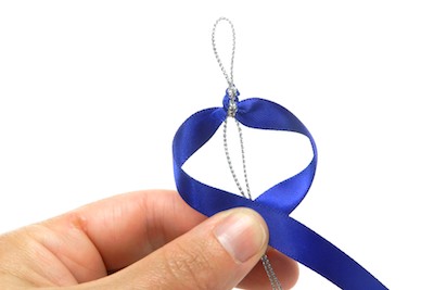 Design an elegant ribbon pendant using a strand of 3/8″ satin ribbon and silver Bowdabra Bow Wire. Follow our simple tutorial