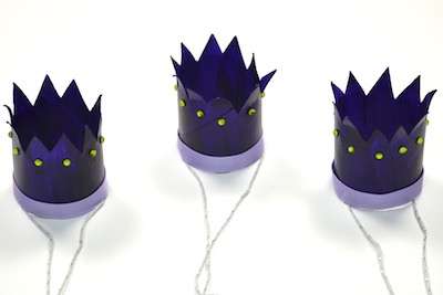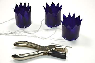 4. Hole punch small little holes on the sides of the crowns. Use a yarn needle to thread embroidery thread through the crowns.