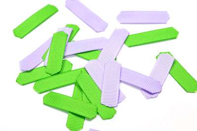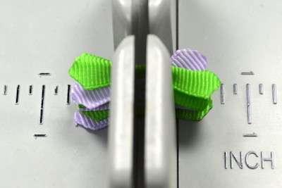 6. Cut strips of 3/8″ ribbon 1.5″ in length. Cut the ribbon with a pointed ends.