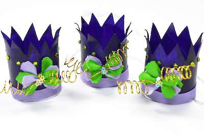 5. Glue 3/8″ ribbon around the bottom rim of the crown and add rhinestones.