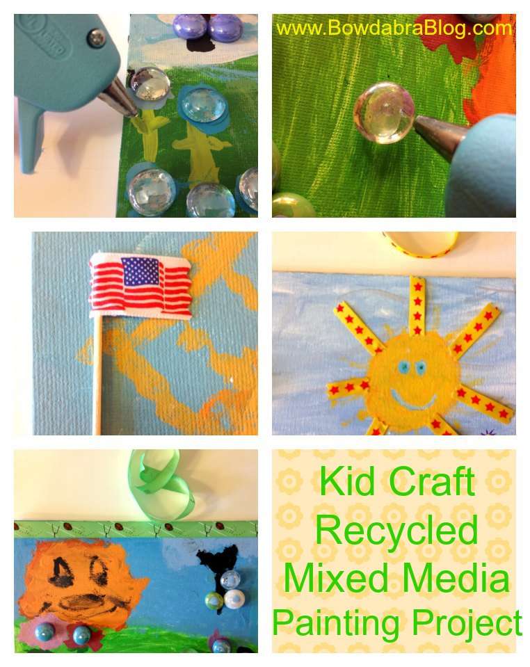 9. Allow the kids to glue ribbon where ever they want it as well as the other mixed media items on their picture.