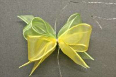 14. Bring the wire around the back of the bow and tie it tightly.