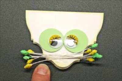 3. Next, fold the shape in half and use 3-D foam for the eyes.