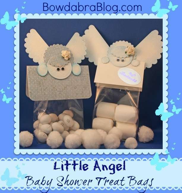 Learn how to make these little angel baby shower treat bags using simple paper cutouts. Kitty of Kitty’s Craft shows you how with her step-by-step picture instructions. Change the color combo to fit any baby shower celebration.