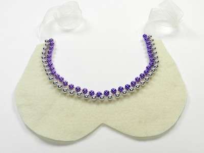 4. Fill the rest of the beaded collar necklace with more rows of Mardi Gras beads – hold the beads in place with E-600 glue.
