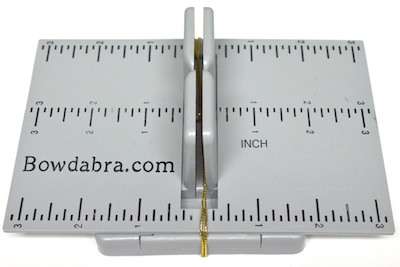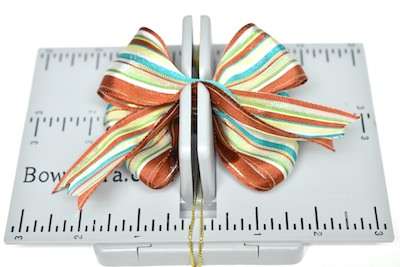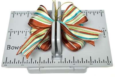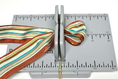 7. To make the bow Mini Bowdabra hair bow – Place the Hair Bow Tool & Ruler onto the Mini Bowdabra. Cut 18″ of Bowdabra Bow Wire and fold the wire in half. Place the wire into the Mini Bowdabra.