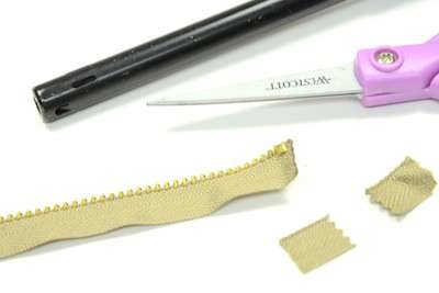 2. Remove the metal stopper at the bottom of the zipper and the zipper.