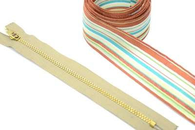 1. Begin with a small zipper and a coordinating ribbon.