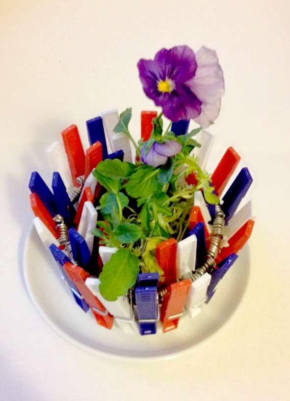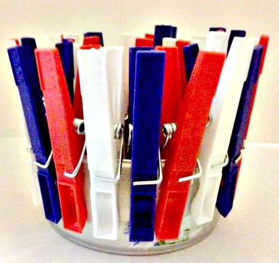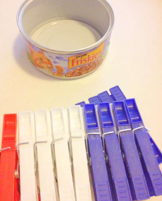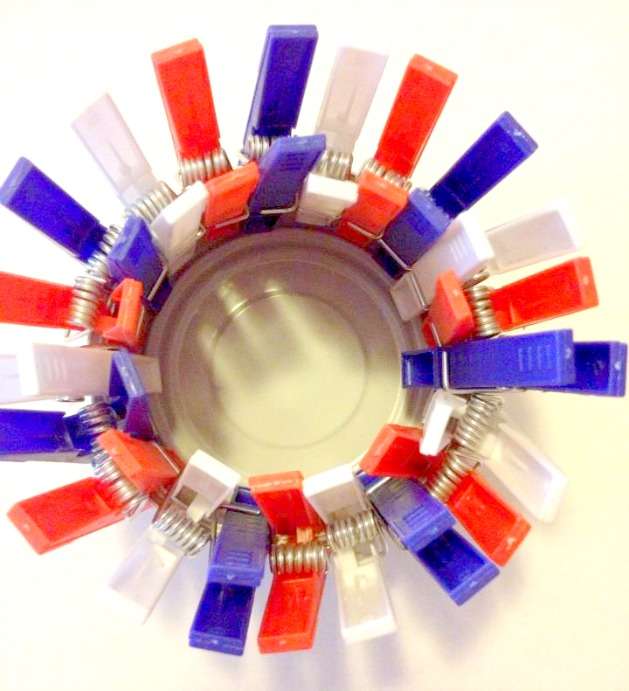 10. Clip the clothes pins all around the container.