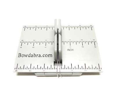 6. While the bow is still in the Mini Bowdabra, thread the two loose ends of the Mini Bowdabra Bow Wire through the loop at the other end. Pull the Bowdabra Bow Wire tightly while the bow is still in the Mini Bowdabra.