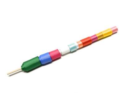 When the dowel is filled either leave the ribbon on it to store it or easily slide the ribbon bobbins from the dowel.
