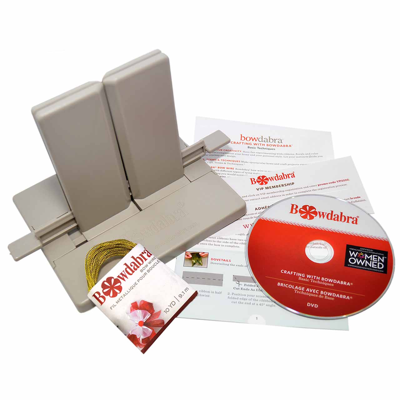This easy-to-use bow maker tool includes simple instructions a 30-minute DVD, with demos for lots of different bows, so that you will be able to create breathtakingly beautiful bows as soon as you open your Bowdabra.