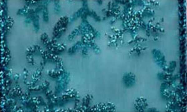 This Turquoise wired sheer is embellished with glittered snowflakes. It is edged in perfectly matching metallic threads.