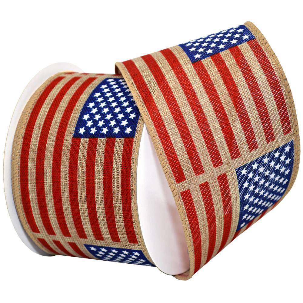 Old Glory stars and stripes motif on a linen back ground for celebrating US Holidays. Great for decorating, floral or gift applications. A natural linen fabric forms the background for the flag giving it a rich country look. A wired edge helps to form shapes in arrangements, decorations or in gift wrap applications. This product is made from 100% Polyester fabric. Morex Ribbon is an importer and manufacturer of decorative ribbon, offering a large variety of creative, fashion-forward quality ribbon.