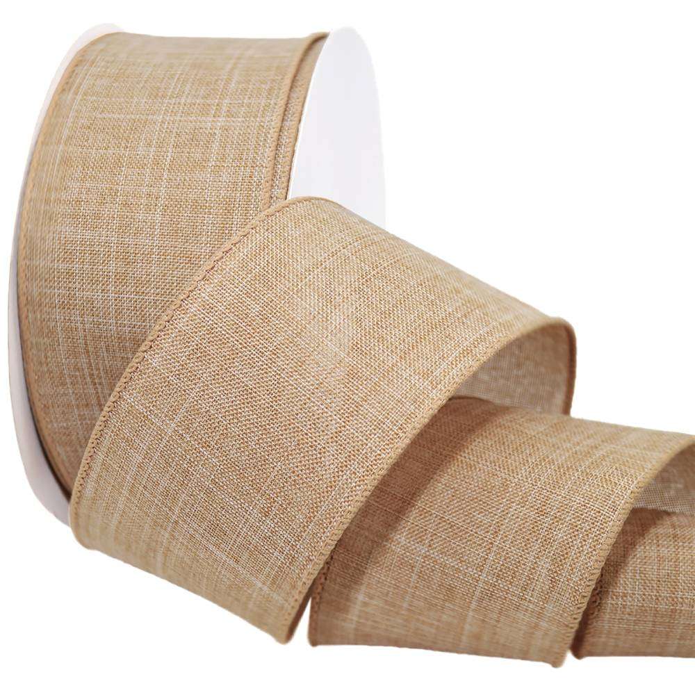 A linen weave in a natural color. Perfect for casual decorating styles as well as formal. Great ribbon for making large bows and adding to wreaths and swags. Wired edges make it easy to create designs and form bows that will hold their shape. Great for parties, and even package decorations.