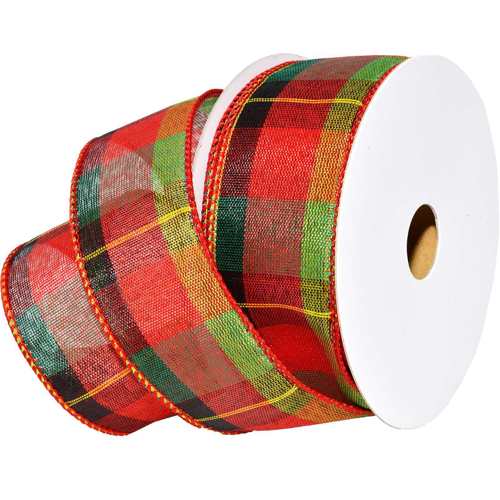 Yuletide Tartan is an updated design to the traditional classic Holiday plaid. Yuletide Tartan mixes the perfect red with moss green, hunter green and thin accents of yellow. Excellent for Christmas trees, swags, wreaths, center pieces, gift wrapping and more. This wired ribbon is made of 100% Polyester and is woven making it the same bold pattern on each side.