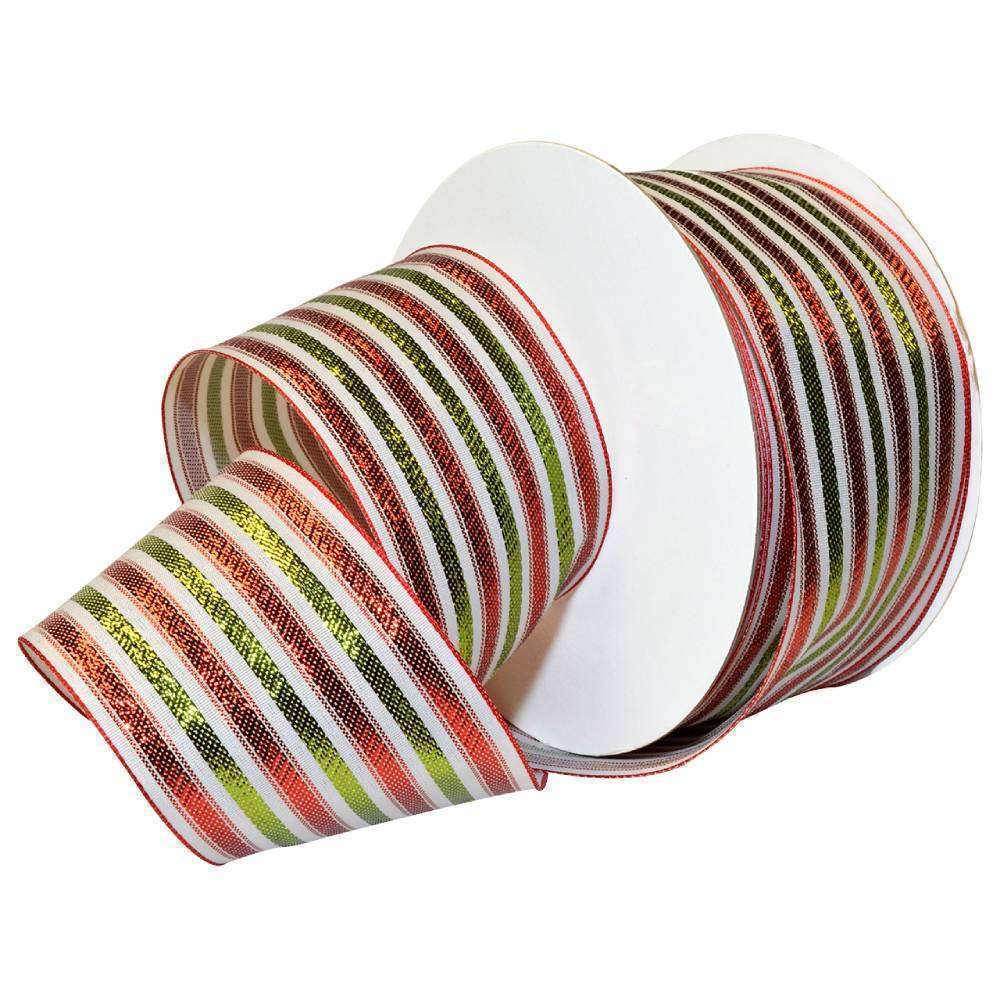 Glittering woven bans, shining stripes, and great color combinations make our Baroque Noel the perfect accent to your holiday decorating. All the shine is in the woven metallic threads so glitter to fall off on your creations. It also makes the ribbon the same on both sides. Create beautifully decorated wreaths, trees, packages and more! More than just a holiday design, add color Champagne Gold to your bridal creations for a top trending combination. So versatile and the economical put-up makes this the perfect ribbon for large projects and events! Made of 75% Polyester, 25% Metallic and is wired.