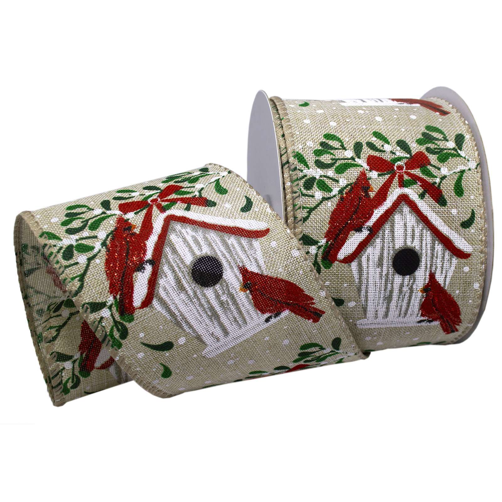 Cardinals are always a favorate and these little holiday birds have their own snow covered cottages. On a natural color background, rich Red and Holiday greens create traditional colors in this new design. Create beautifiul wreaths, swags, trees, gift and more! Made of 100% Polyester and is wired.