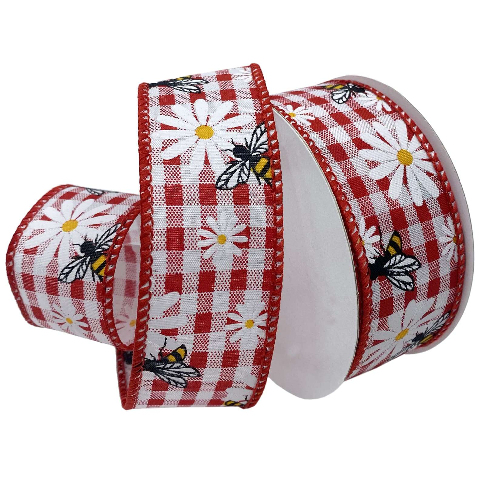 Three patterns all in one, this lively design combines gingham check, daisy flowers and buzzing bees. Create great Spring, Summer or everyday designs. Bees and Blossoms is offered in three popular color ways. Create striking wreaths, swags, home decorations, gift wraps and more! This product is made from 100% Polyester fabric and is wired.