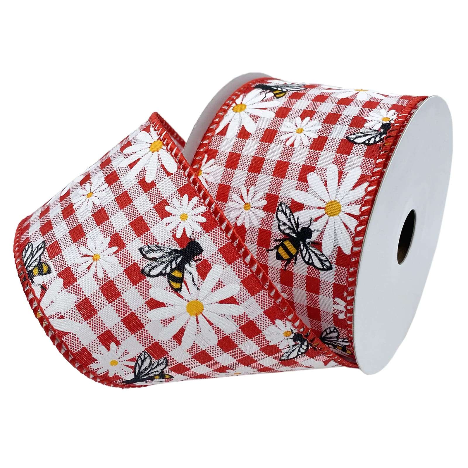 Three patterns all in one, this lively design combines gingham check, daisy flowers and buzzing bees. Create great Spring, Summer or everyday designs. Bees and Blossoms is offered in three popular color ways. Create striking wreaths, swags, home decorations, gift wraps and more! This product is made from 100% Polyester fabric and is wired.