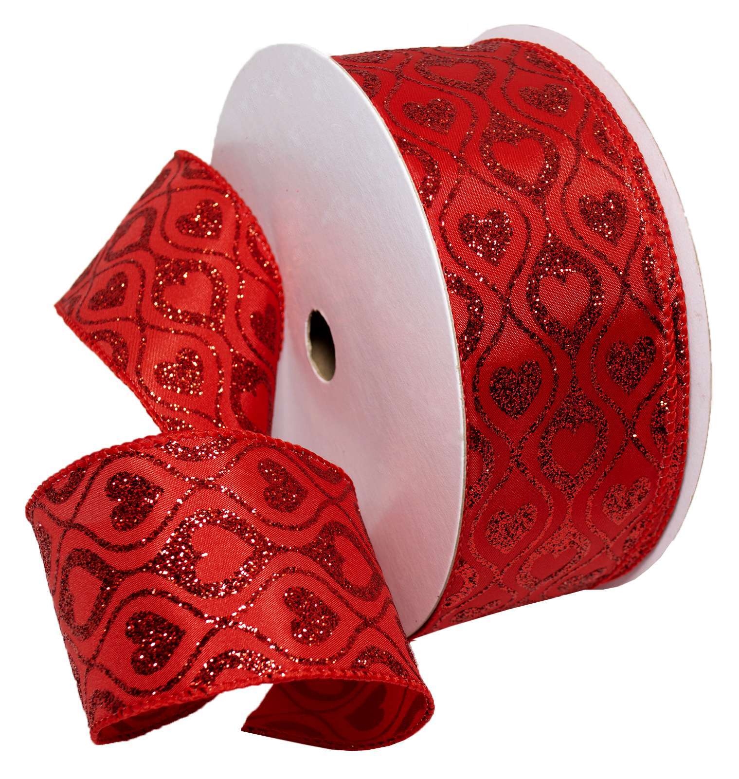 An a background of satin this beautiful Valentine ribbon is adorned with swirling waves and glittered hearts. It is wired with a sewn metallic edge. Add drama and grace to your floral arrangements, packages and more! So versatile and the economical lenght makes this the perfect ribbon for large projects and events! Made of 100% Polyester.
