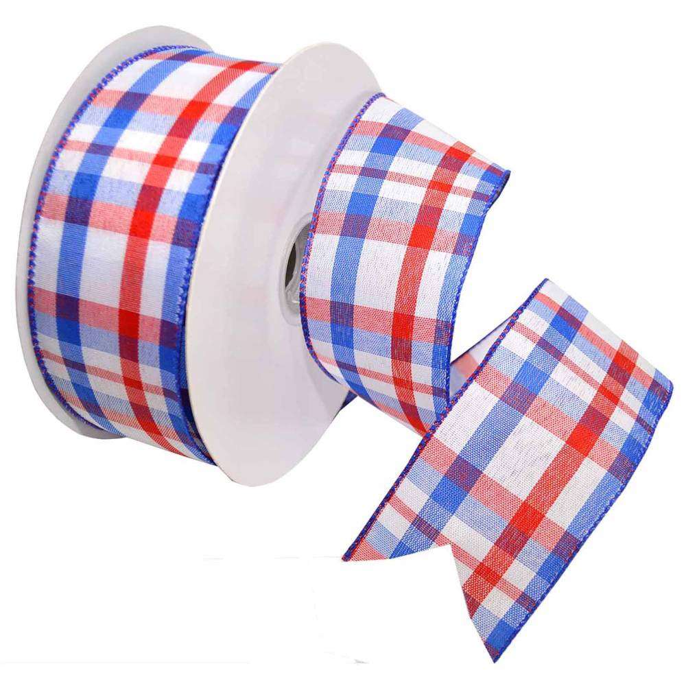 Bold plaid design in bright colors. With such saturated color, this ribbon makes for unique spring or summer decorations. Great ribbon for making large bows and adding to wreaths and swags This product wired and is made from 100% Polyester fabric. Morex Ribbon is an importer and manufacturer of decorative ribbon, offering a large variety of creative, fashion-forward quality ribbon.