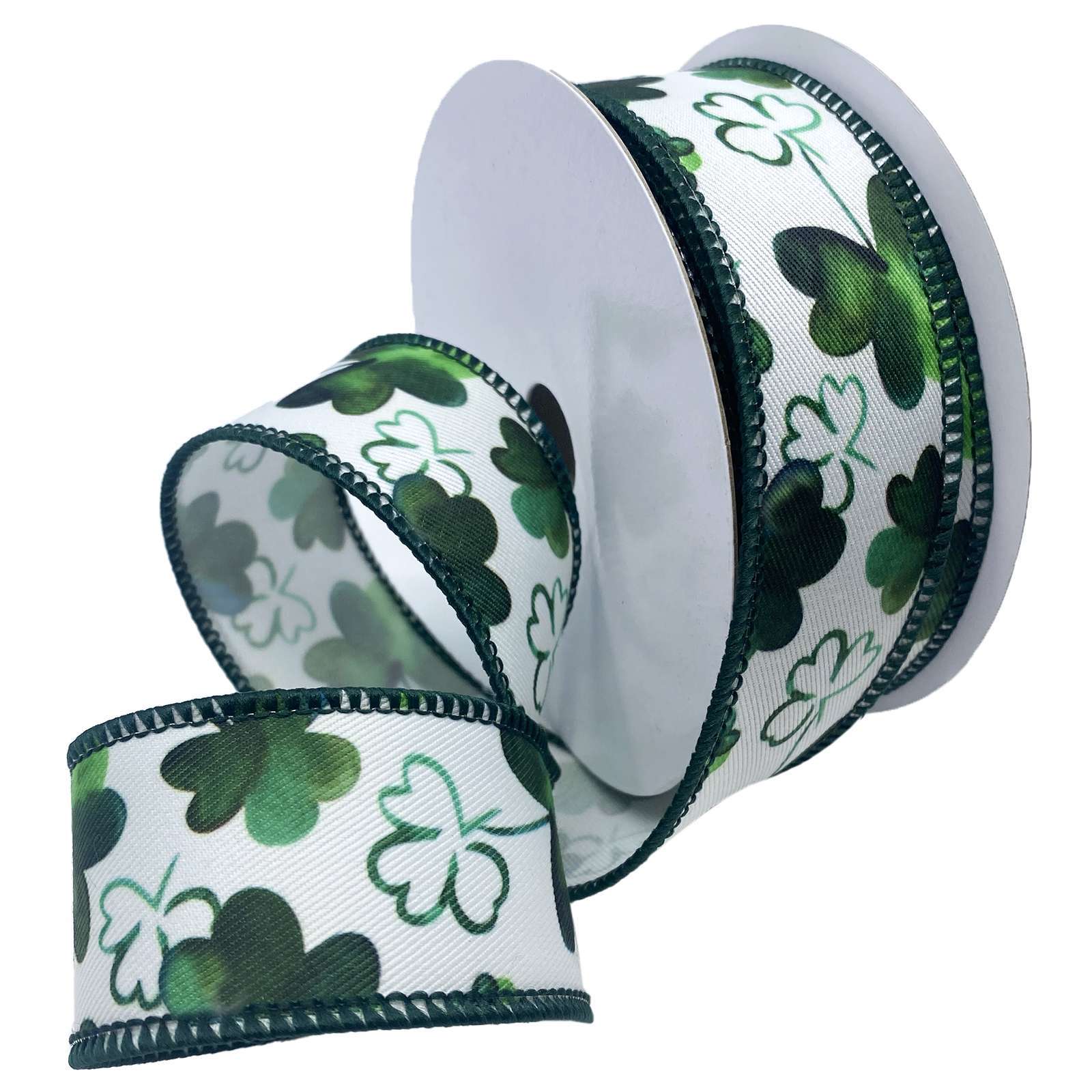 1-1/2″ SHIMMERING SHAMROCKS 10YD White/Green
