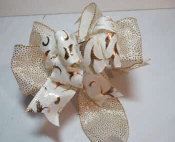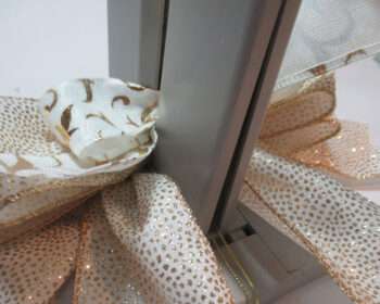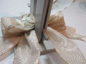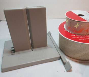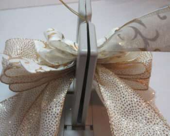 Next, cut a length of gold-edged ribbon approximately 12″ long and place it in the Bowdabra.