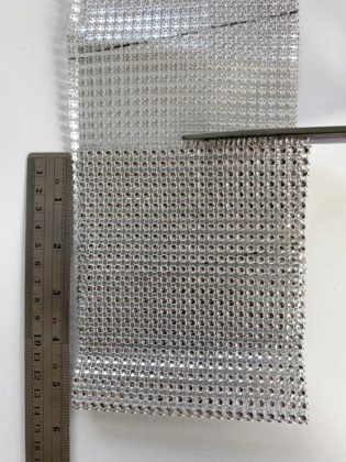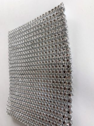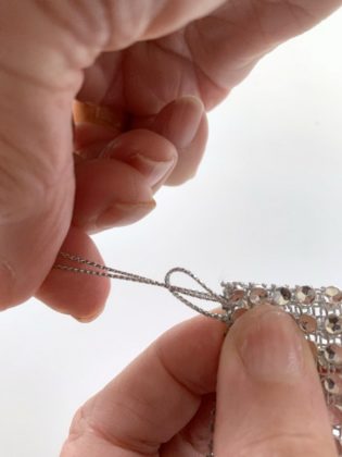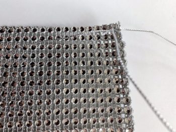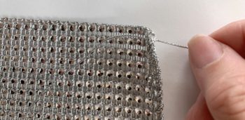 Then sew the mesh together with the bow wire creating overcast stitches by inserting the ends through the next opening or hole, overlapping the rows to the next hole connecting both mesh layers together.