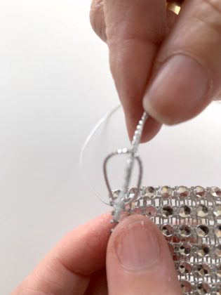 Continue sewing the two layers together with the bow wire, wrapping the edges of the two mesh sides together . . .