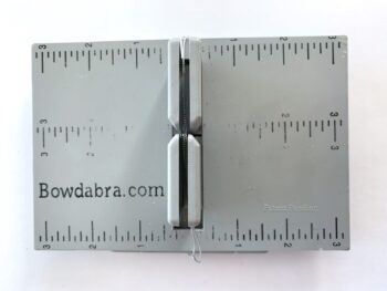 While the bow is still in the Mini Bowdabra, thread the two loose ends of the bow wire through the loop. Pull tightly while gently pulling the bow out.