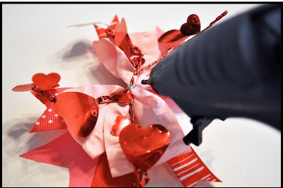 4. Place the 2 Pre-cut pieces of Heart Garland in the Mini Bowdabra. NOTE: Fold the ends so no children get poked with the sharp wire.