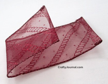 1. Cut a piece of 2 1/4 to 2 1/2 inch wide ribbon 7 1/2 inches long.