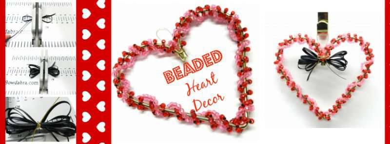 Create a beaded heart craft decoration for this Valentine’s Day. Finish the beaded heart with a beautiful Mini Bowdabra bow. Hang the elegant beaded decor on a window or door to celebrate the season.