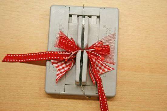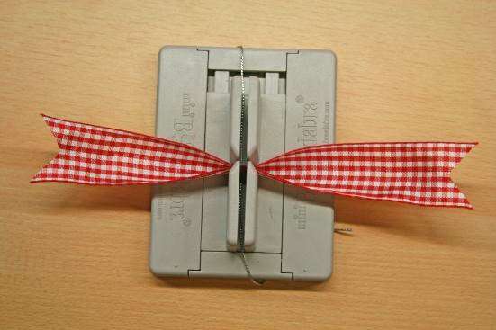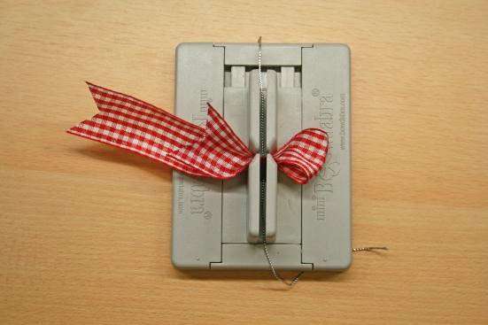 7. To make the bow for the napkin ring cut 12″ of Bowdabra Bow Wire. Fold the wire in half and place it into the Mini Bowdabra.