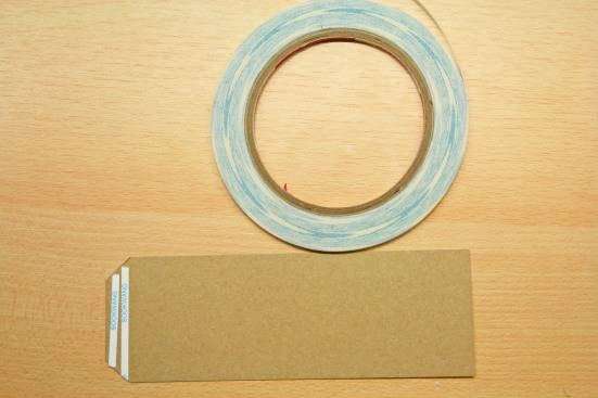 2. Cut brown paper into a tag shape. Cut the shape 5.5cm by 16cm add double sided tape to the tag edge.