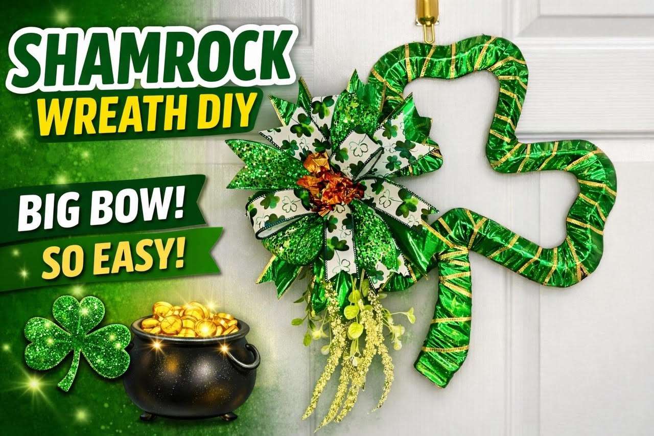 Create a St. Patrick’s Day Shamrock Wreath using a dollar store wired shamrock wreath and a gorgeous layered bow made with the Bowdabra® Bow Maker! This is a fun way to use scrap ribbon, add texture, and build a full bow with two simple styles: an awareness-style “funky” bow and shoelace bows.