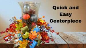 Make another attachment and another bow, and tie all four pieces to a wreath for the centerpiece.  Fluff and arrange all the attachments. Place a vase filled with fall scatter, and you have a stunning centerpiece!