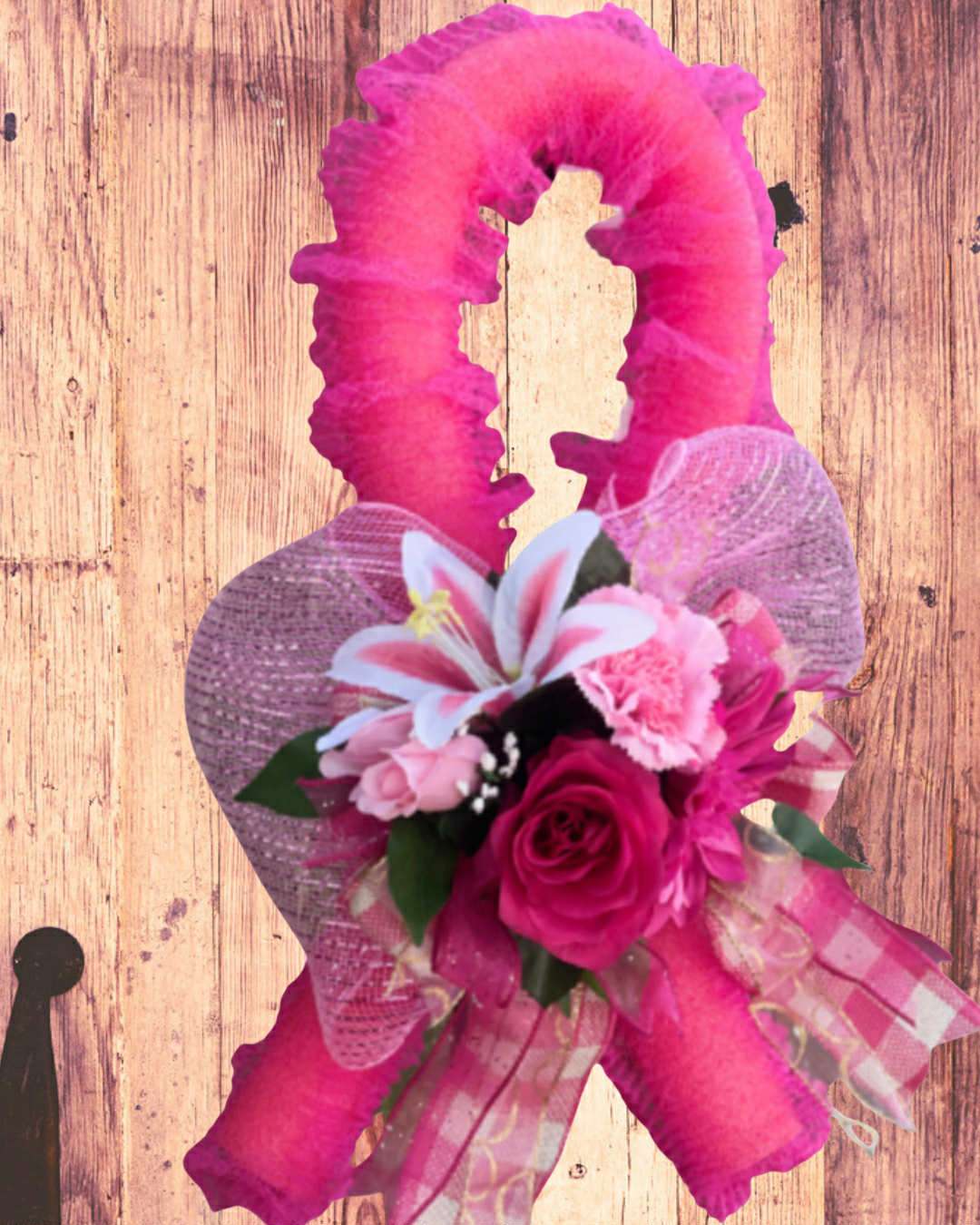 Use the excess wires to tie the bow to the breast cancer wreath and enjoy it all through October.