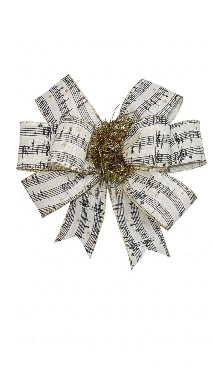 Sandy Sandler shows you the step-by-step process of making an ultimate multi-use bow. Perfect for a music lover with the music note wired ribbon! Use it to dress up gift packages, or put it on a wreath, the mantel, and more. It is so simple that you can make several in just minutes. So, let’s get started: