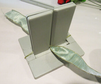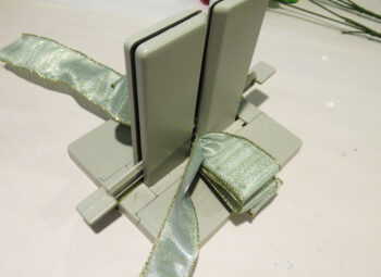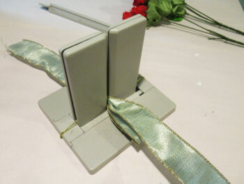Leaving a 6″ length of ribbon, place the ribbon in the Bowdabra.